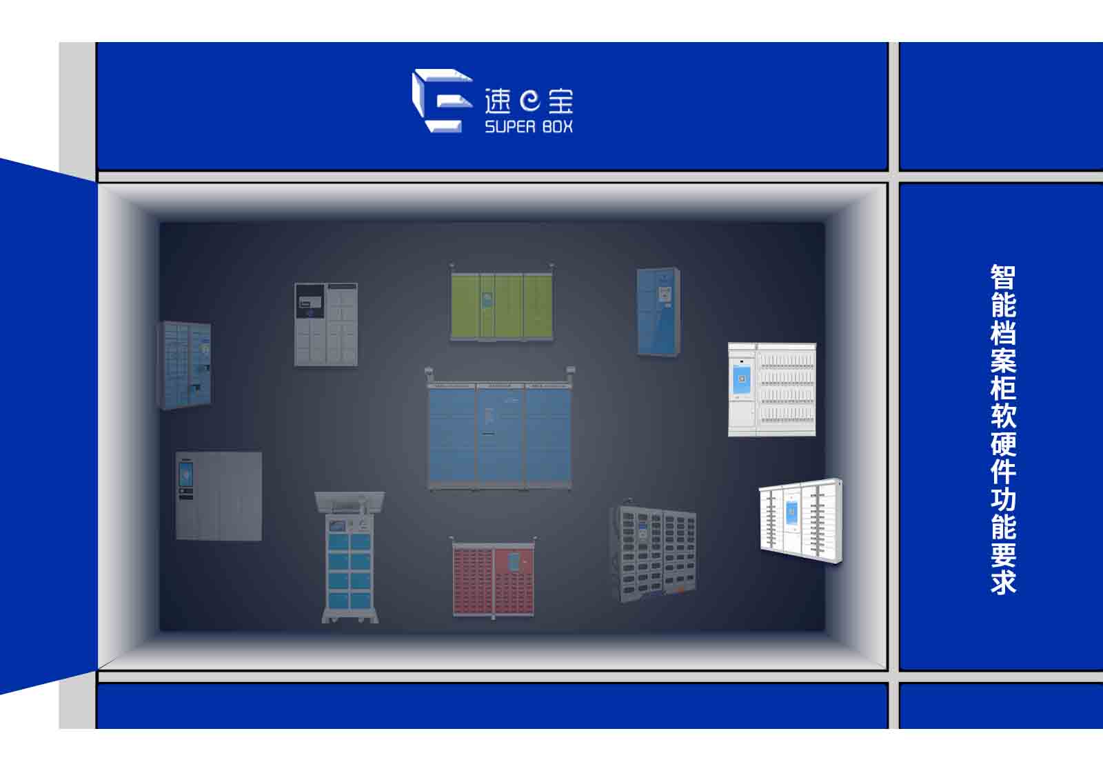 智能档案柜软硬件功能要求 智能档案柜 硬件功能 1、联网控制档案柜; 2、档案管理报表打印; 3、运行状态显示; 4、光电安全保护; 5、手动/自动走层; 6、应急手摇功能; 7、自动门; 8、10.2寸触摸屏控制; 9、RFID射频实时盘...